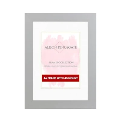 Alison Kingsgate Silver A4 Frame with Mount For A5 Size (14.8 x 21cm) Modern Design Picture Safe Perspex Front & Wall Hanging Hooks Handmade Frames