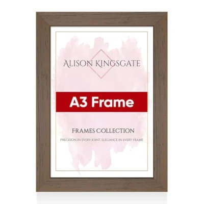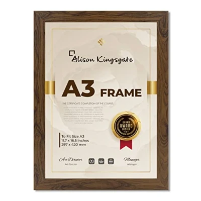 Alison Kingsgate Walnut A3 Frame in Size 30x42cm with Clear Perspex Sheet & Wall Mounted Hook Use for Picture Frames Photo Poster (A3, Walnut)