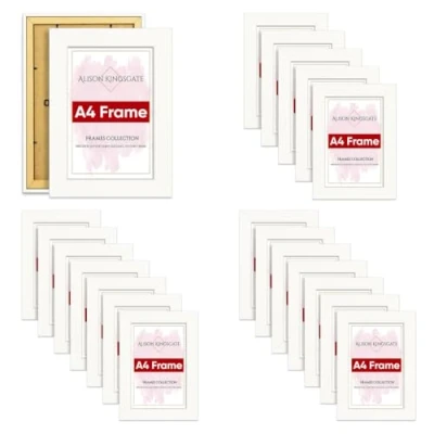 Alison Kingsgate White A4 Frame Pack Of 20 In Size 29.7x21cm With Clear Perspex Sheet & Wall Mounted Hook Use Certificate Multipack Picture Frames Set