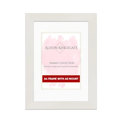Alison Kingsgate White A4 Frame with Mount For A5 Size (14.8 x 21cm) Modern Design Picture Safe Perspex Front & Wall Hanging Hooks Handmade Frames