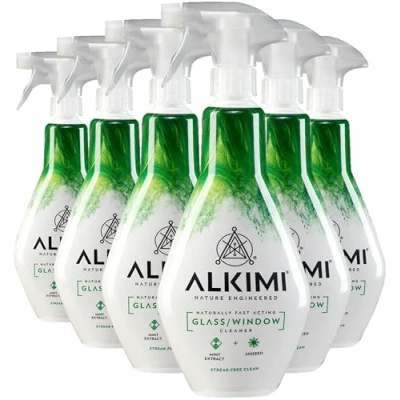 ALKIMI Glass Cleaner Spray x6 Nature Engineered and Window with Antibacterial, Antifungal, Antiseptic Properties Powerful Natural Mirror Shower Cleaning