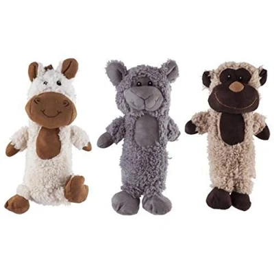 Made of soft faux suede, lamb plush and ropes Provides fantastic tactile impression Dog love the sound of the crackling bottle inside the toy