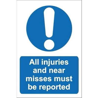 All injuries and near misses must be reported 1mm flexible Plastic sign (200mm x 150mm)