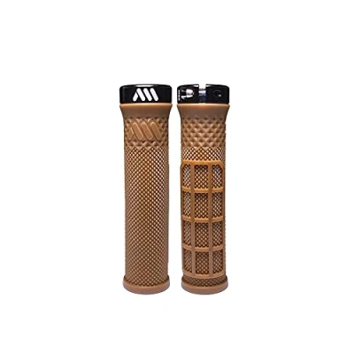 Dual pattern and density. Locking is provided with a single inside collar. Big inward diamonds at the thumb, smaller and outward diamonds with waffle style at the center provide high grip without compromising comfort. Delivered by pair. Subtle flange at the end. Specifications: 132mm total length, 30mm constant diameter and constant thickness. The pair are just under 3.52 ounces.