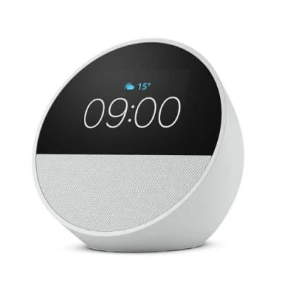 All new Echo Spot (2024 release), Smart alarm clock with vibrant sound + Alexa, Glacier White