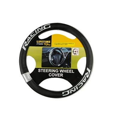 Racing steering wheel cover: Enhance your steering wheel with this black racing-inspired cover Compatibility: Suitable for car steering wheels Color: Features a sleek and stylish black color Material: Crafted from leather for durability and comfort