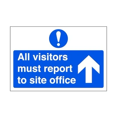 All visitors must report to office "arrow up" - road sign - Indoor/outdoors Safety Sign to meet legal obligations and foster compliance. Utilizing high-quality 1.2mm rigid plastic, our signage is waterproof, laminated for extra UV durability, and environmentally friendly, ensuring long-lasting effectiveness. Measuring 400mm x 300mm, our sign ensures optimal visibility when mounted at eye level for viewing within 14 meters, effectively enhancing safety and communication on the road network This sign conforms to EN ISO 7010:2012 standards, featuring a centrally positioned black pictogram or text against a contrasting background, ensuring clear communication and adherence to safety regulations Experience peace of mind with our comprehensive 4-year warranty covering all signage. We stand by our commitment to quality, ensuring durability and reliability for every product.