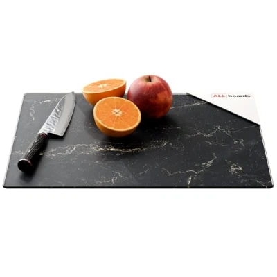 ALLboards Glass Chopping Board 30 x 40 cm Black Marble Kitchen Board, Protective Panel, Serving Tray Splashback Worktop Saver for Hob Protection Hot Cover Heat Resistant