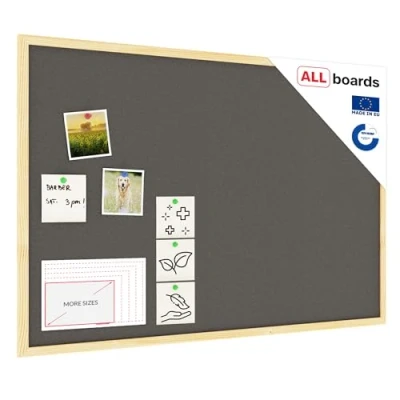 ALLboards Grey Cork Notice Board Wooden Natural Frame 60x40 cm