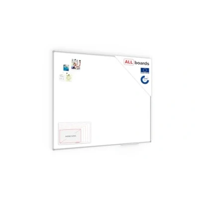 SURFACE - Dry-erase magnetic surface, made from high quality white painted sheet metal Frame - anodised, elegant aluminium frame in grey with plastic corners Easy to assemble – mounting material and accessories are included in the delivery Areas of application: universal white board, suitable for school, lecture hall, conference room, office and home Use: ideal for writing on whiteboard markers and for attaching notes with magnets
