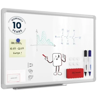 ALLboards Magnetic Whiteboard 60x40cm with Silver Aluminium Frame Premium Expo, White Board Wipe Dry Erase Wall Mounted Office School Classroom Kids Noticeboard