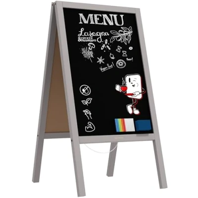 ALLboards Pavement Sign with Grey Varnished Wooden Frame 118x61cm, Sidewalk Advertising Board Chalkboard A Chain Double Sides for Shop Pub Restaurant