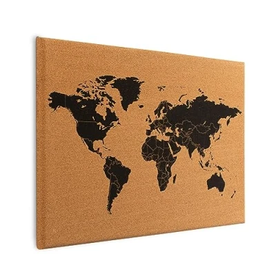 Surface – The product is crafted from high-quality cork and features a printed world map design. Easy Installation – with included mounting elements, you can easily and pleasantly hang the board on the wall. Versatile – The board is perfectly suited for an office, a children’s room, or a living room. Multifunctional – With the included push pins, you can mark different places around the world and attach travel-related notes Complimentary - The set includes 1 board, 5 location pins and 10 gold pins.