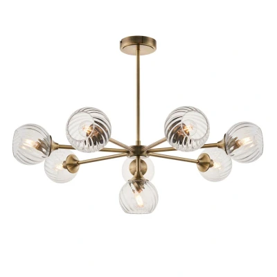 Allegra 8 Light Multi Arm Glass Shade Ceiling Pendant Antique Brass