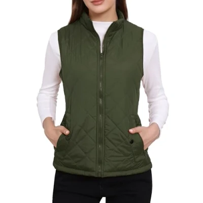 Stand Collar, Zippered Pockets, Fully Lined, Zip Closed, Elasticized Armholes, Padded Gilet The fashion vest for women with fully lined inside which is designed to keep you stay in warm and comfy Occasion: Dating, Out Going, Casual, Travel, Home, Office, Vacation etc Machine Wash Inside Out Model Body Size: Height: 5ft 7inches, Chest: 35inches, Waist: 27inches, Hip: 37 1/2inches, model is wearing an X-Small