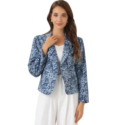 Allegra K Women's Suit Suede Blazers Notch Lapel Open Front Allover Printed Jackets for Women Blue Floral 8