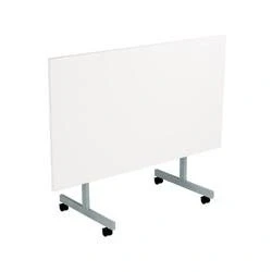An economical mobile flip-top table, available in a variety of shapes and finishes. Hard-wearing MFC top Silver legs with black castors. Nests for easy storage when not in use..