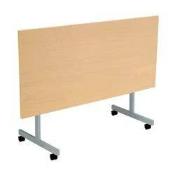An economical mobile flip-top table, available in a variety of shapes and finishes. Hard-wearing MFC top Silver legs with black castors. Nests for easy storage when not in use..