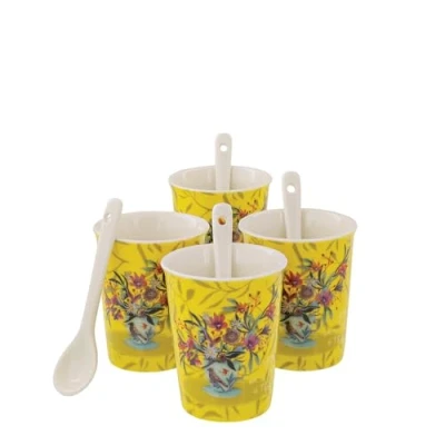 Allen Designs Cup of Tea 4 Cups & Spoons Set, Height 7cm