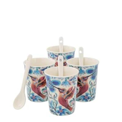 Allen Designs Hummingbird 4 Cups & Spoons Set