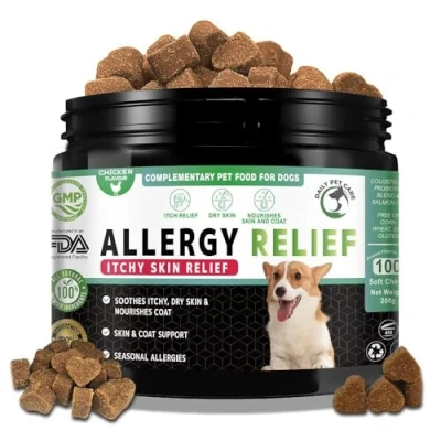 ✅ Fast Relief for Itchy Skin & Hot Spots: Helps soothe scratching, licking and red, irritated skin with Omega-3, Colostrum, and 5-strain probiotics (250M CFU). Support your dog’s skin, coat and comfort naturally. ✅ Delicious Soft Chews Dogs Love: Salmon & chicken-flavored, soft chews are easy to give daily. No hiding pills, no fuss — perfect for small, medium and large dogs of all breeds. ✅ Supports Seasonal Allergies & Sensitive Skin: Formulated to reduce dry skin, inflammation and allergy-related itching. Helps maintain coat shine and softness, ideal for sensitive skin dogs. ✅ NATURAL DOG VITAMINS & SUPPLEMENTS – Our grain-free, gluten-free and soy-free chews contain NO artificial additives, making them a safe and tasty choice for all breeds and sizes. ✅ Noticeable Results in 30 Days: Regular daily use can reduce itching, scratching and shedding. Promote a happier, calmer dog while preventing allergy flare-ups and hot spots. ✅ HEALTHIER DOG, HAPPIER YOU: Daily Pet Care supplements Improve your dog's quality of life and time you get to spend with them with all natural dog treats. Together, let's keep our pups healthy!