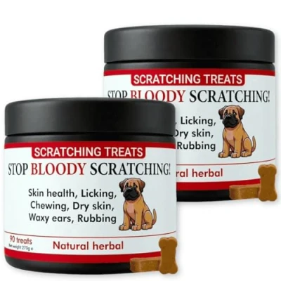 Pets Calm DownSoothe your dog in under 30 days with natural herbal ingredients. Help them with itching, scratching, and chewing. Soft, easy to chew or crush, with a savoury smell dogs find irresistible. Tub contains 90 treats.. Stop Year-Round Itching. Avoid Excessive Scratching. Helps Sensitive & Irritated Skin. Prevent Dirty Greasy Ears. Soothe Itchy Skin & Discomfort. Nourish Irritated Skin & Coat