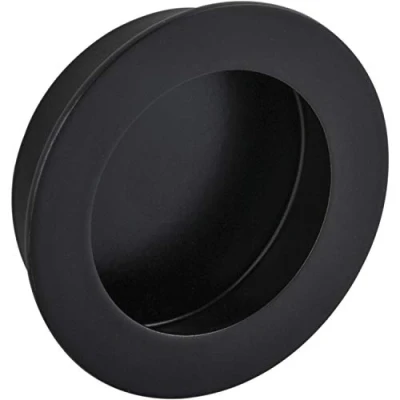 Very modern inlet handle in matt black stainless steel Outer diameter: 60 mm, depth: 2 mm, inlet dimensions: diameter: 50 mm, depth: 13 mm. Bar handle drawer handle box handle cabinet handle comode handle kitchen handle rail handle for living room, bedroom, kitchen, bathroom, toilet, wardrobe, turning doors, sliding doors etc. For mounting with M4 handle screws (not included), Manufacturer: alles im griff