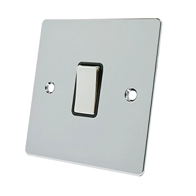 Alliance Electrical FPC1GSWIBCI Polished Chrome Flat Intermediate Black Insert Metal Rocker Switch 10 Amp Single 1 Gang Light Switch, 240 V