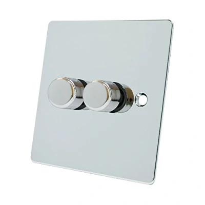 240V 10 amp double 2 gang light dimmer switch Polished chrome silver mirror effect metal plate. Sleek & stylish flat plate. Mounting back box: min. 35 mm deep (Not Included) Max. Load: 250W. Trailing edge technology. Push on/off with rotary dimming 250W Suitable for mains / low Voltage / LEDs lighting For 1 or 2 way circuits, Weight: 0.330693393 pounds, Manufacturer: No