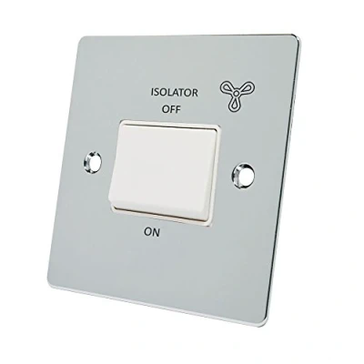 Alliance Electrical FPC3PFANWH Polished Chrome Flat White Insert Plastic Rocker Switch 10 Amp 3 Pole Fan Isolator Switch, 240 V