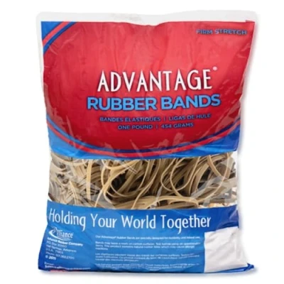 HIGH COUNT PER POUND: Advantage rubber bands have a mid-range rubber content and offer a high count per pound so you know you're getting a great value with these quality elastic bands. FIRM AND STURDY STRETCH: These rubber bands offer an easy stretch with an ultimate elongation of 700% from their original size. Use them for a variety of tasks requiring a firm and sturdy hold. IDEAL FOR EVERYDAY USE AT HOME: Advantage elastic bands are a handy and useful tool to have around the house. Use them to keep crafts, tools, games and other items organized or to keep food packaging closed to seal in freshness. OFFICE TOOL: Use Advantage elastic bands in the office to keep mail, folders and paperwork organized and tidy whether you work in a large office or have a home business. MADE IN THE USA: Advantage rubber bands are made in the USA so you know that you're receiving a high quality product, fresher stock and faster service.