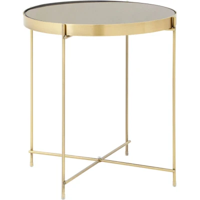JoybuyThe Interiors by Premier Side Table Allure features a black mirrored glass top framed by brushed bronze, set on slim chromed legs for a modern, space-saving accent. Durable and easy to maintain, this compact table adds refined elegance to lounges, bedrooms, or hotel suites. Assembly required.