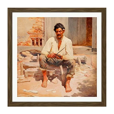 Almeida Junior Caipira Cutting Tobacco Square Wooden Framed Wall Art Print Picture 16X16 Inch