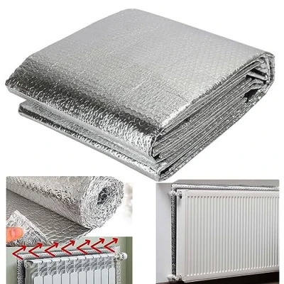 REDUCE YOUR HEATING BILLS: Radiator reflective foil reduce your heating bills by retaining heat within your home. Insulation foil wrap easily reflects 95% of the heat back to the room instead of heating the wall behind the radiator. You can easily warm your room, save energy, and reduce your carbon footprint. ENERGY EFFICIENT: This high performance reflective foil radiator insulation is manufactured from laminated aluminium & will provide an economical solution to help prevent heat loss & reduce household energy bills. It is long lasting, safe to use & easy to install which offers immediate, quick & efficient results requiring no maintenance. EASY TO USE You can cut the radiant barrier insulation foil according to your sizes. Cut easily to the proper size you need with scissors or a knife and stick to the space wherever you need to prevent heat loss in your home. PREMIUM QUALITY MATERIAL: This double radiator foil is made from laminated aluminium foil with a coating to prevent oxidation. The bubble foil combined with the durable bubble core, which is insulation and lightweight. VERSATILE USES: The Radiator foil insulation is ideal for lofts, walls, floors, Tool shed,concrete roofs, greenhouse, car roofs, metal buildings etc. Insulation and keeping warm. DIMENSIONS: Radiator insulation foil sheet size 10m x 0.6m . Radiator foil for enhanced thermal insulation. It comes complete with a 3m sticker pad., Manufacturer: Almineez