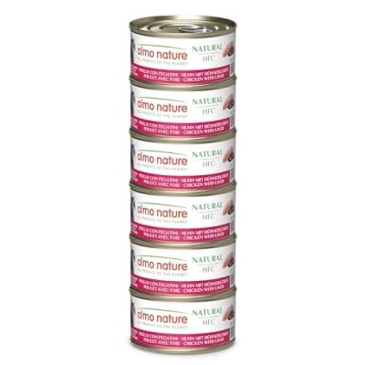 Almo Nature HFC Natural Wet Cat Food Chicken and Liver Human Grade, Gluten Free, Monoprotein 70g, Pack of 6