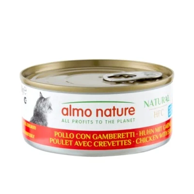 Almo Nature HFC Natural Wet Cat Food for Cats Chicken and Shrimps Gluten Free, Grain Human Grade, Monoproteic 150g (Pack of 24)