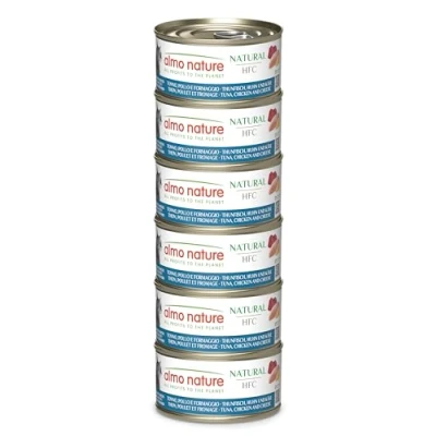 Almo Nature HFC Natural Wet Cat Food Tuna, Chicken and Cheese Human Grade, Gluten Free 70g, Pack of 6