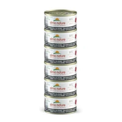 Almo Nature HFC Natural Wet Cat Food Tuna with Squid Human Grade, Gluten Free 70g, Pack of 6