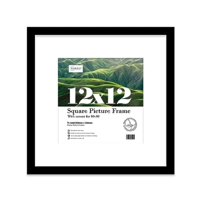 Almost Frameless 12x12 Picture Frame, Display Pictures 10x10 With Mat or Without Mat, Wall Hanging Photo Black, 1 Pack