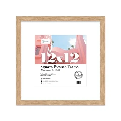 Almost Frameless 12x12 Picture Frame, Display Pictures 10x10 With Mat or Without Mat, Wall Hanging Photo Oak, 1 Pack