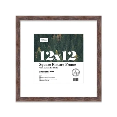 Almost Frameless 12x12 Picture Frame, Display Pictures 10x10 With Mat or Without Mat, Wall Hanging Photo Walnut, 1 Pack