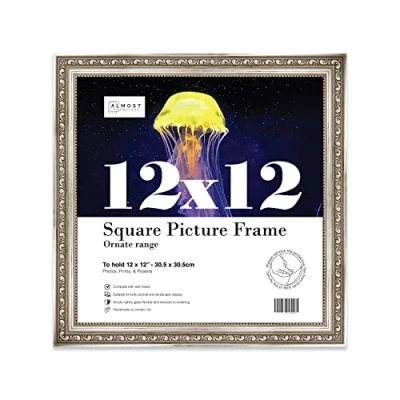 SIZE AND ORIENTATION: This embellished style picture frame is precision cut with machines to ensure it perfectly houses an 12x12 piece of artwork, photo or print. Fold-out wall hooks allow for this picture frame to be easily hung in either landscape or portrait orientation. SUSTAINABLE AND DURABLE MATERIALS: These 12x12 Ornate picture frames are made by expert picture framers using Polecore a sustainable recycled moulding. The window museum quality Perspex glazing for the best possible viewing experience for your pictures. This 12x12 baroque-style picture frame has a vintage style with a Silver finish which will look great with any home decor or office. PERFECT FOR ANY OCCASION: Our 12x12 Silver ornamental Frame is the perfect way to showcase your favourite artwork, memories, or achievements. Picture frames are often considered extensions of the art and what better way to enhance your beloved artwork than with this 12x12 ornamental Frame. Guaranteed to enhance the decor of your Office or as a gift for a loved one. MADE IN THE UK: All of our picture frames are made in our London-based workshop. We hold ourselves to an incredibly high standard and pride ourselves on putting customer satisfaction first.