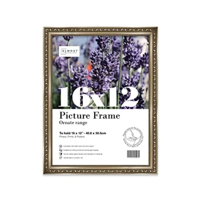 SIZE AND ORIENTATION: This embellished style picture frame is precision cut with machines to ensure it perfectly houses an 16x12 piece of artwork, photo or print. Fold-out wall hooks allow for this picture frame to be easily hung in either landscape or portrait orientation. SUSTAINABLE AND DURABLE MATERIALS: These 16x12 Ornate picture frames are made by expert picture framers using Polecore a sustainable recycled moulding. The window museum quality Perspex glazing for the best possible viewing experience for your pictures. This 16x12 baroque-style picture frame has a vintage style with a Gunmetal finish which will look great with any home decor or office. PERFECT FOR ANY OCCASION: Our 16x12 Gunmetal ornamental Frame is the perfect way to showcase your favourite artwork, memories, or achievements. Picture frames are often considered extensions of the art and what better way to enhance your beloved artwork than with this 16x12 ornamental Frame. Guaranteed to enhance the decor of your Office or as a gift for a loved one. MADE IN THE UK: All of our picture frames are made in our London-based workshop. We hold ourselves to an incredibly high standard and pride ourselves on putting customer satisfaction first.