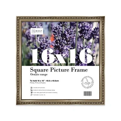 SIZE AND ORIENTATION: This embellished style picture frame is precision cut with machines to ensure it perfectly houses an 16x16 piece of artwork, photo or print. Fold-out wall hooks allow for this picture frame to be easily hung in either landscape or portrait orientation. SUSTAINABLE AND DURABLE MATERIALS: These 16x16 Ornate picture frames are made by expert picture framers using Polecore a sustainable recycled moulding. The window museum quality Perspex glazing for the best possible viewing experience for your pictures. This 16x16 baroque-style picture frame has a vintage style with a Gunmetal finish which will look great with any home decor or office. PERFECT FOR ANY OCCASION: Our 16x16 Gunmetal ornamental Frame is the perfect way to showcase your favourite artwork, memories, or achievements. Picture frames are often considered extensions of the art and what better way to enhance your beloved artwork than with this 16x16 ornamental Frame. Guaranteed to enhance the decor of your Office or as a gift for a loved one. MADE IN THE UK: All of our picture frames are made in our London-based workshop. We hold ourselves to an incredibly high standard and pride ourselves on putting customer satisfaction first.