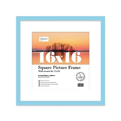 Almost Frameless 16x16 Picture Frame, Display Pictures 14x14 With Mat or Without Mat, Wall Hanging Photo Light Blue, 1 Pack