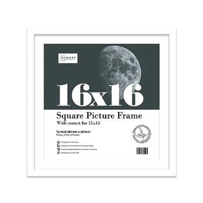 QUALITY White 16x16 PICTURE FRAME: This 16x16 With mount for 15x15 Print, Poster or Photo Picture Frame is perfect for displaying your cherished prints, posters, artwork or photos. With its Thin edge lightweight design, this picture frame will comfortably take your 16x16 For 15x15 artwork. SUSTAINABLE AND DURABLE MATERIALS: These 16x16 With mount for 15x15 Stylish and thin picture frames are made by expert picture framers using Polecore a sustainable recycled moulding. The window museum quality Perspex glazing for the best possible viewing experience for your pictures. This 16x16 With mount for 15x15 slim-edged picture frame has a modern style with a White finish which will look great with any home décor or office. SIZE AND ORIENTATION: This embellished style picture frame is precision cut with machines to ensure it perfectly houses a 16x16 mount to take a 15x15 piece of artwork, photo or print. If you wish you can remove the mount to display an 16x16" print.Fold-out wall hooks allow for this picture frame to be easily hung in either landscape or portrait orientation. PERFECT FOR ANY OCCASION: Our 16x16 With mount for 15x15 White Picture Frame is the perfect way to showcase your favourite artwork, memories, or achievements. Picture frames are often considered extensions of the art and what better way to enhance your beloved artwork than with this 16x16 With mount for 15x15 lightweight thin edge photo frame. Guaranteed to enhance the décor of your Office or as a gift for a loved one. MADE IN THE UK: All of our picture frames are made in our London-based workshop. We hold ourselves to an incredibly high standard and pride ourselves on putting customer satisfaction first.