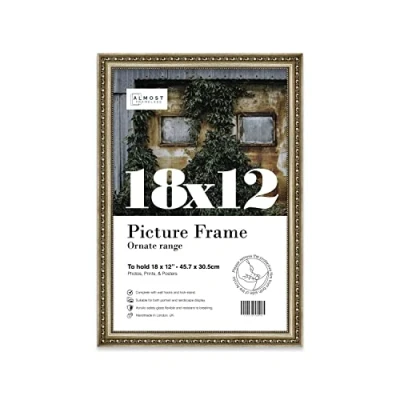SIZE AND ORIENTATION: This embellished style picture frame is precision cut with machines to ensure it perfectly houses an 18x12 piece of artwork, photo or print. Fold-out wall hooks allow for this picture frame to be easily hung in either landscape or portrait orientation. SUSTAINABLE AND DURABLE MATERIALS: These 18x12 Ornate picture frames are made by expert picture framers using Polecore a sustainable recycled moulding. The window museum quality Perspex glazing for the best possible viewing experience for your pictures. This 18x12 baroque-style picture frame has a vintage style with a Champaign finish which will look great with any home decor or office. PERFECT FOR ANY OCCASION: Our 18x12 Champaign ornamental Frame is the perfect way to showcase your favourite artwork, memories, or achievements. Picture frames are often considered extensions of the art and what better way to enhance your beloved artwork than with this 18x12 ornamental Frame. Guaranteed to enhance the decor of your Office or as a gift for a loved one. MADE IN THE UK: All of our picture frames are made in our London-based workshop. We hold ourselves to an incredibly high standard and pride ourselves on putting customer satisfaction first.