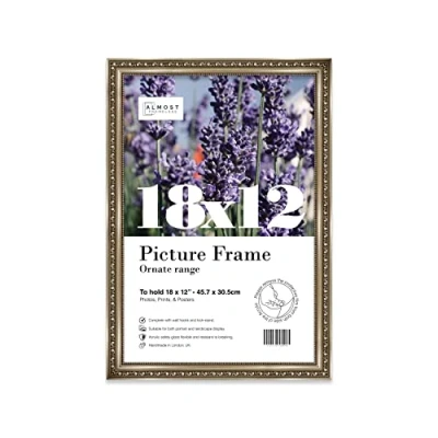 SIZE AND ORIENTATION: This embellished style picture frame is precision cut with machines to ensure it perfectly houses an 18x12 piece of artwork, photo or print. Fold-out wall hooks allow for this picture frame to be easily hung in either landscape or portrait orientation. SUSTAINABLE AND DURABLE MATERIALS: These 18x12 Ornate picture frames are made by expert picture framers using Polecore a sustainable recycled moulding. The window museum quality Perspex glazing for the best possible viewing experience for your pictures. This 18x12 baroque-style picture frame has a vintage style with a Gunmetal finish which will look great with any home decor or office. PERFECT FOR ANY OCCASION: Our 18x12 Gunmetal ornamental Frame is the perfect way to showcase your favourite artwork, memories, or achievements. Picture frames are often considered extensions of the art and what better way to enhance your beloved artwork than with this 18x12 ornamental Frame. Guaranteed to enhance the decor of your Office or as a gift for a loved one. MADE IN THE UK: All of our picture frames are made in our London-based workshop. We hold ourselves to an incredibly high standard and pride ourselves on putting customer satisfaction first.