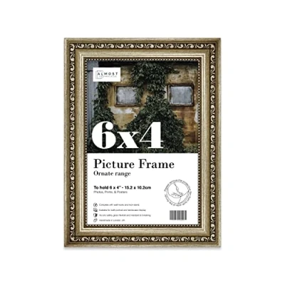 Almost Frameless 6x4 Champaign Ornate Picture Frame 6"x4"(15.2x10.2cm) Poster, Photo, Artwork, or Print. Opulent Style Portrait and Landscape Display with Wall Hooks