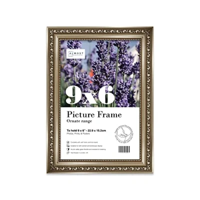 SIZE AND ORIENTATION: This embellished style picture frame is precision cut with machines to ensure it perfectly houses an 9x6 piece of artwork, photo or print. Fold-out wall hooks allow for this picture frame to be easily hung in either landscape or portrait orientation. The fold-out kickstand allows for both vertical and horizontal freestanding display on any bedside table, desk or countertop. SUSTAINABLE AND DURABLE MATERIALS: These 9x6 Ornate picture frames are made by expert picture framers using Polecore a sustainable recycled moulding. The window museum quality Perspex glazing for the best possible viewing experience for your pictures. This 9x6 baroque-style picture frame has a vintage style with a Gunmetal finish which will look great with any home decor or office. PERFECT FOR ANY OCCASION: Our 9x6 Gunmetal ornamental Frame is the perfect way to showcase your favourite artwork, memories, or achievements. Picture frames are often considered extensions of the art and what better way to enhance your beloved artwork than with this 9x6 ornamental Frame. Guaranteed to enhance the decor of your Office or as a gift for a loved one. MADE IN THE UK: All of our picture frames are made in our London-based workshop. We hold ourselves to an incredibly high standard and pride ourselves on putting customer satisfaction first.